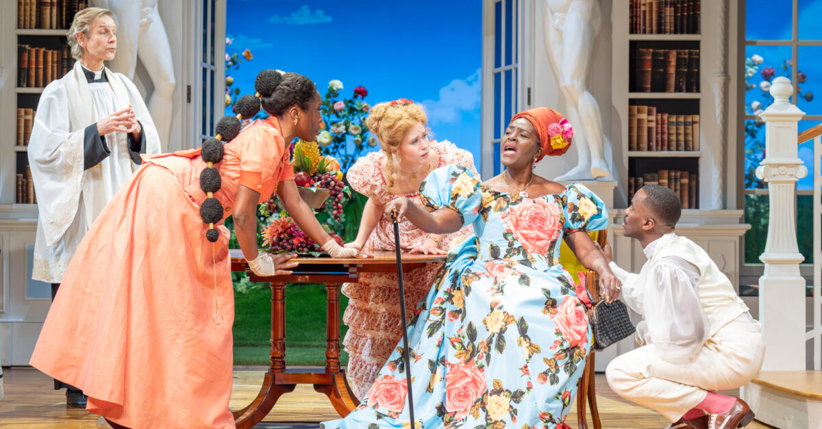 I am such a big fan of Ncuti Gatwa, he is an incredibly talented performer who brings his own twist to every role he plays. His portrayal of Algernon is splendid, an upper class young man who will not be constrained by the barriers and order of society. His on-stage bromance with his friend Jack/John Worthing, played by the hilarious Hugh Skinner, is very comedic and they play off each other very well. Hugh Skinner seems perfect for the role of Jack and he completely steals the show in certain scenes mostly due to his clever comedic expression and over exaggerated gestures. Ronkẹ Adékọluẹ́jọ́ is a joy to watch as Gwendolen Fairfax, especially toward the end of the play as it seems she grows into the role and some of her facial expressions had me howling with laughter. Eliza Scanlen plays Jack’s ward Cecily and she plays it excellently as well, the characters childish remarks pair well with Scanlens portrayal and her ad libbed line in the final scene received riotous laughter!