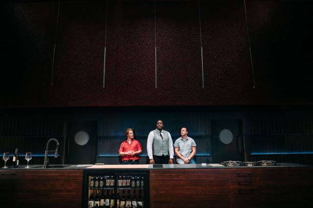 Patrick Marber’s comedy is celebrating its 30th birthday and so it seemed fitting to put it on. The Donmar is the perfect space for it, due to it’s setting being a small restaurant in London and the set designed by Moi Tran is absolute perfection as in the second half we go from the top of restaurant down to the basement as the floor magically rises and we are now in the middle of a heated poker game. I got goosebumps watching that set rise and everything was designed so seamlessly!